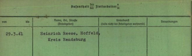 [4] Ein Teil der „Kartei der ausländischen Zivilarbeiter im 2. Weltkrieg” des Kreises Rendsburg ist 1977 von Rolf Schwarz auf dem Boden des alten Kreishauses in Rendsburg gefunden worden. Es fehlen allerdings die Buchstaben L, P, Q, R, U, V, W, X, Y, Z. Die Karteikarten können heute in fotokopierter Form im Landesarchiv in Schleswig eingesehen werden (LAS Abt. 320 RD ungeordnet, Bd. 286, Nr. 10 - 24). Die Originale befinden sich beim Internationalen Suchdienst (International Tracing Service) ITS in Arolsen bei Kassel [Arolsen Archives].
