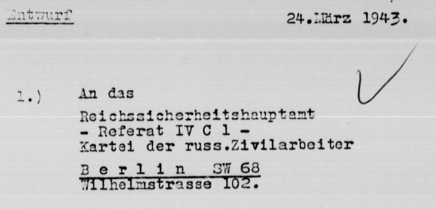 Die Vernichtung der zentralen Ausländer-Kartei in Berlin Am 5. Februar 1944 sah sich Heinrich Himmler gezwungen, alle nachgeordneten Dienststellen (inklusive der Kreispolizeibehörden) über den "Fortfall der doppelten Karteikarten" zu informieren: "Die beim Reichssicherheitshauptamt geführten zentralen Karteien der polnischen Zivilarbeiter und der Ostarbeiter sind durch Feindeinwirkung vernichtet worden. Ihre Wiederherstellung während des Krieges wird nicht beabsichtigt. Von der Vorlage der Karteidoppelkarten beim Reichssicherheitshauptamt ist daher mit sofortiger Wirkung abzusehen."[5]