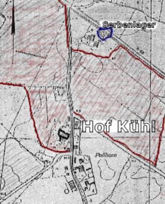 Herr Kühl erinnert sich, dass es in der Nähe ihres Hofes ein Lager mit etwa 30 Serben, ausschließlich Männern, gab. Die serbischen Zwangsarbeiter wurden nicht allgemein in der Landwirtschaft untergebracht, sondern lebten kaserniert in einem alten, umgebauten Stall.