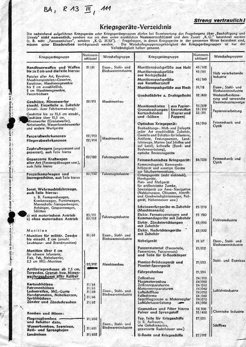 Das Kriegsgeräteverzeichnis zur RBK