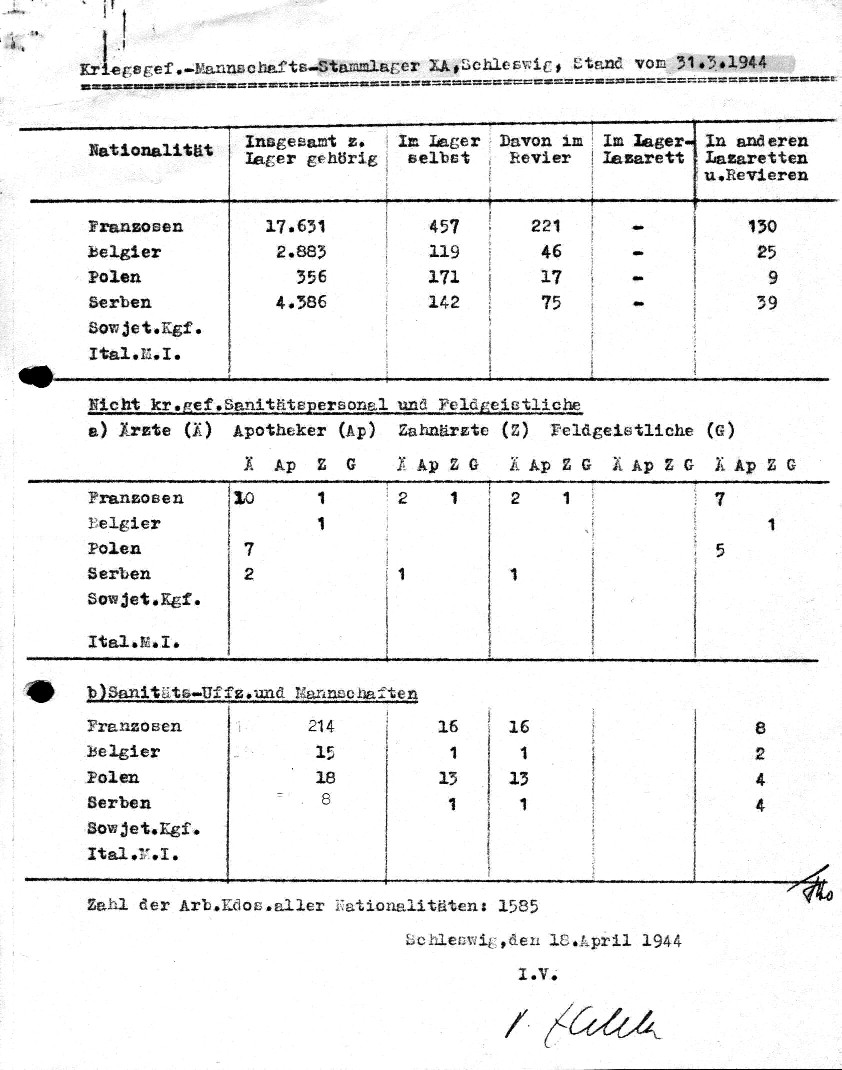 Die Belegung des Stammlagers XA (Schleswig) im März 1944