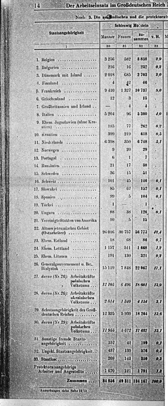 Zahlenangaben für Schleswig-Holstein (30.9.1944)