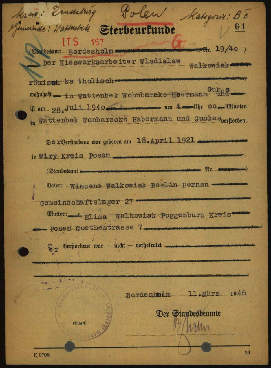 [Sterbeurkunde Walkowiak: in Arolsen-Archives Nr. 76896096]